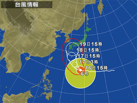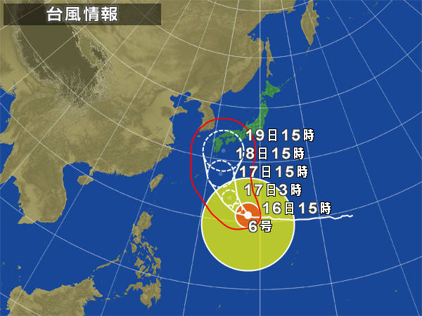 台風6号が西日本に直撃しそうな雰囲気。