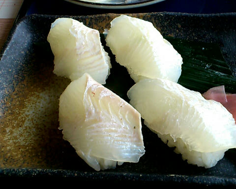 うどん、天ぷらはまあ普通のお味でしたが、メインのヒラメ握りはヒラメの身に 弾力があり、おいしゅうございました。