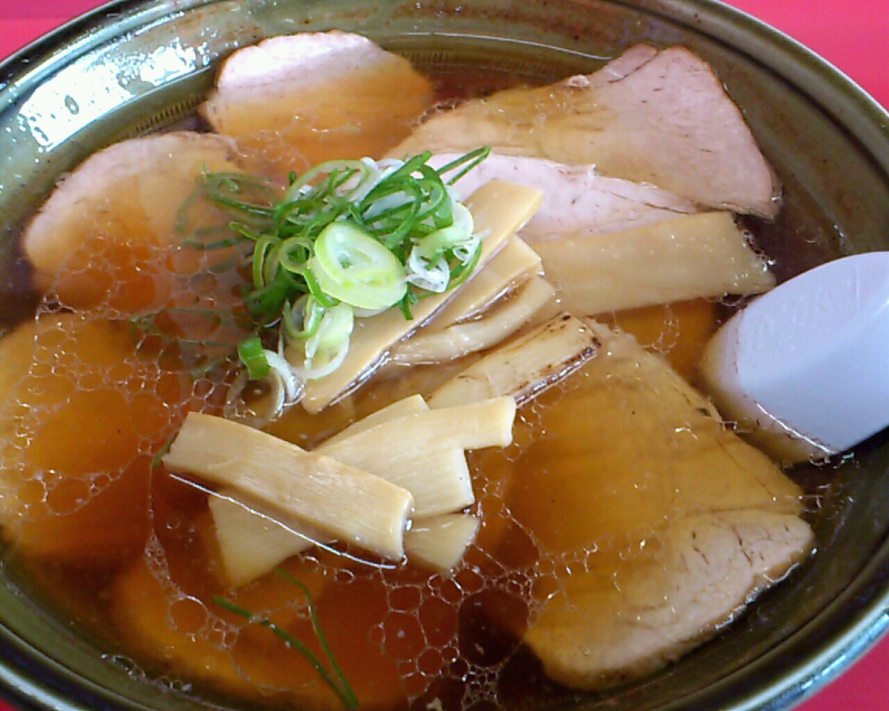 スープは醤油ベース。スープの表面に浮く油が見た目、味に大きな影響を感じました。