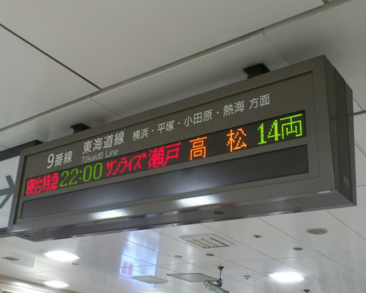 サンライズ瀬戸は、東京駅の9番ホームからの出発です。