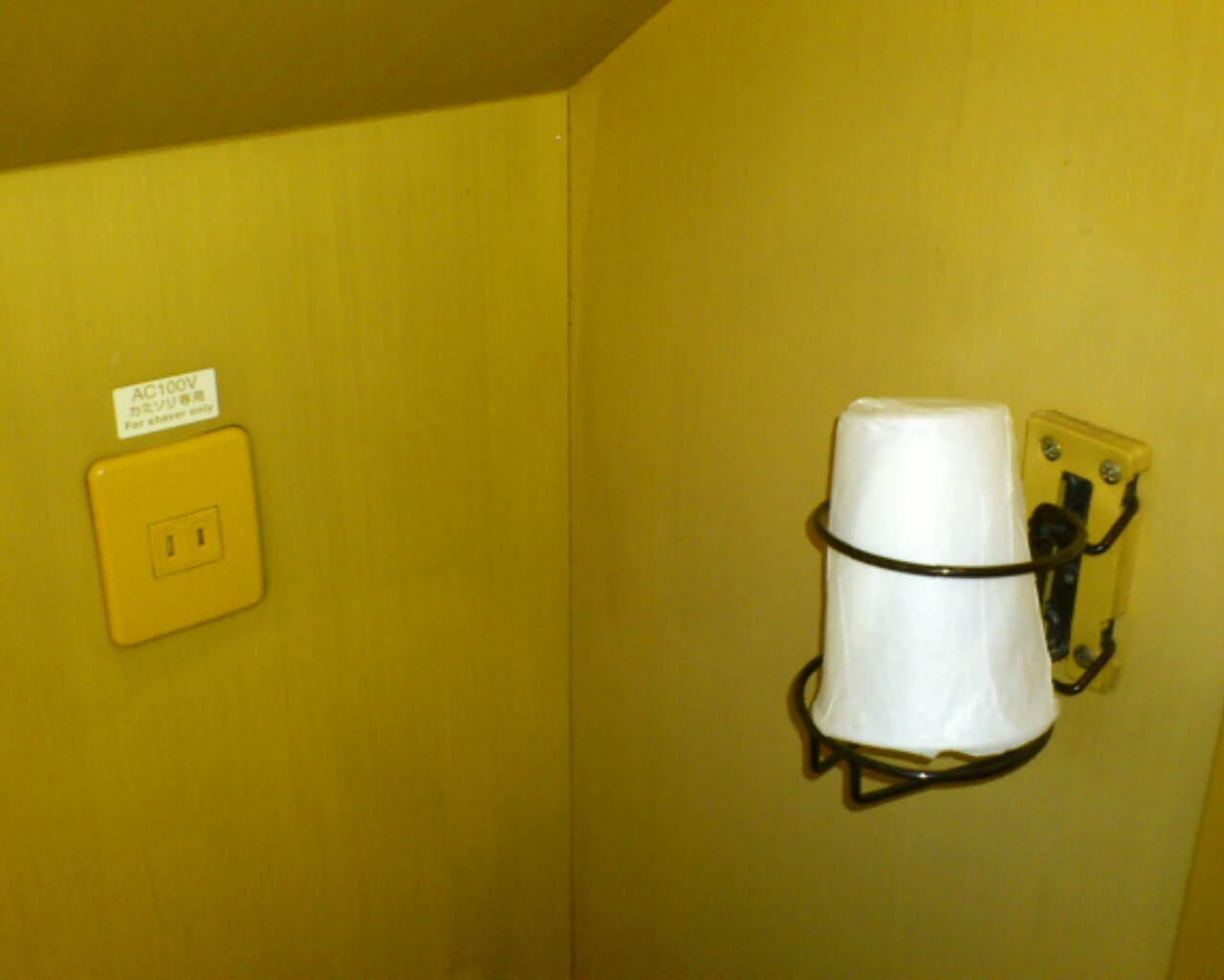 備品は、紙コップが一つ、ハンガーが一つ、枕、毛布、浴衣です。