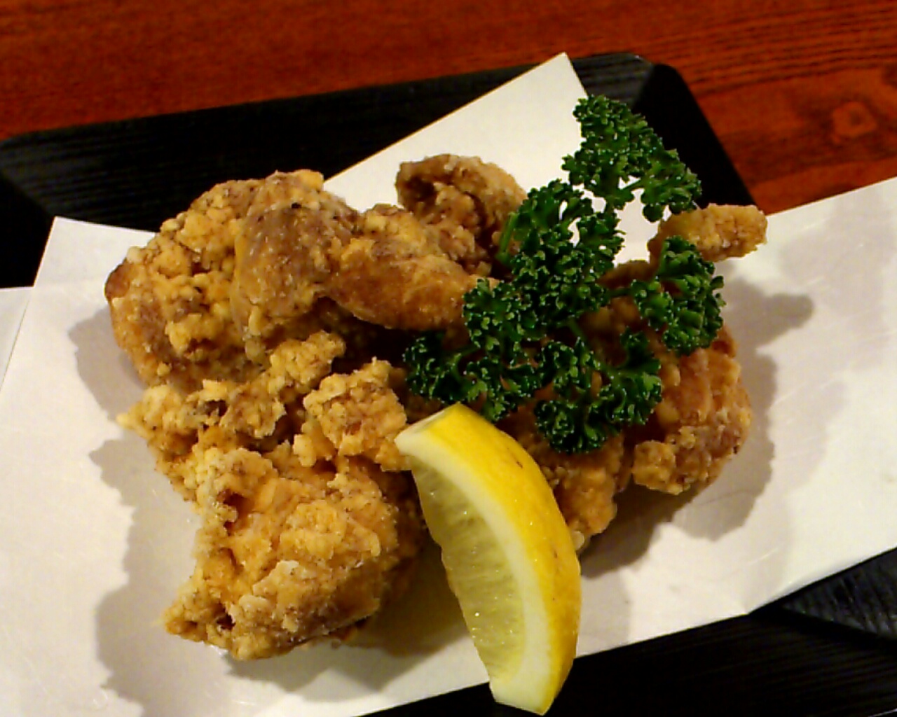 つまみは伊予地鶏の唐揚げ「せんざんき」。