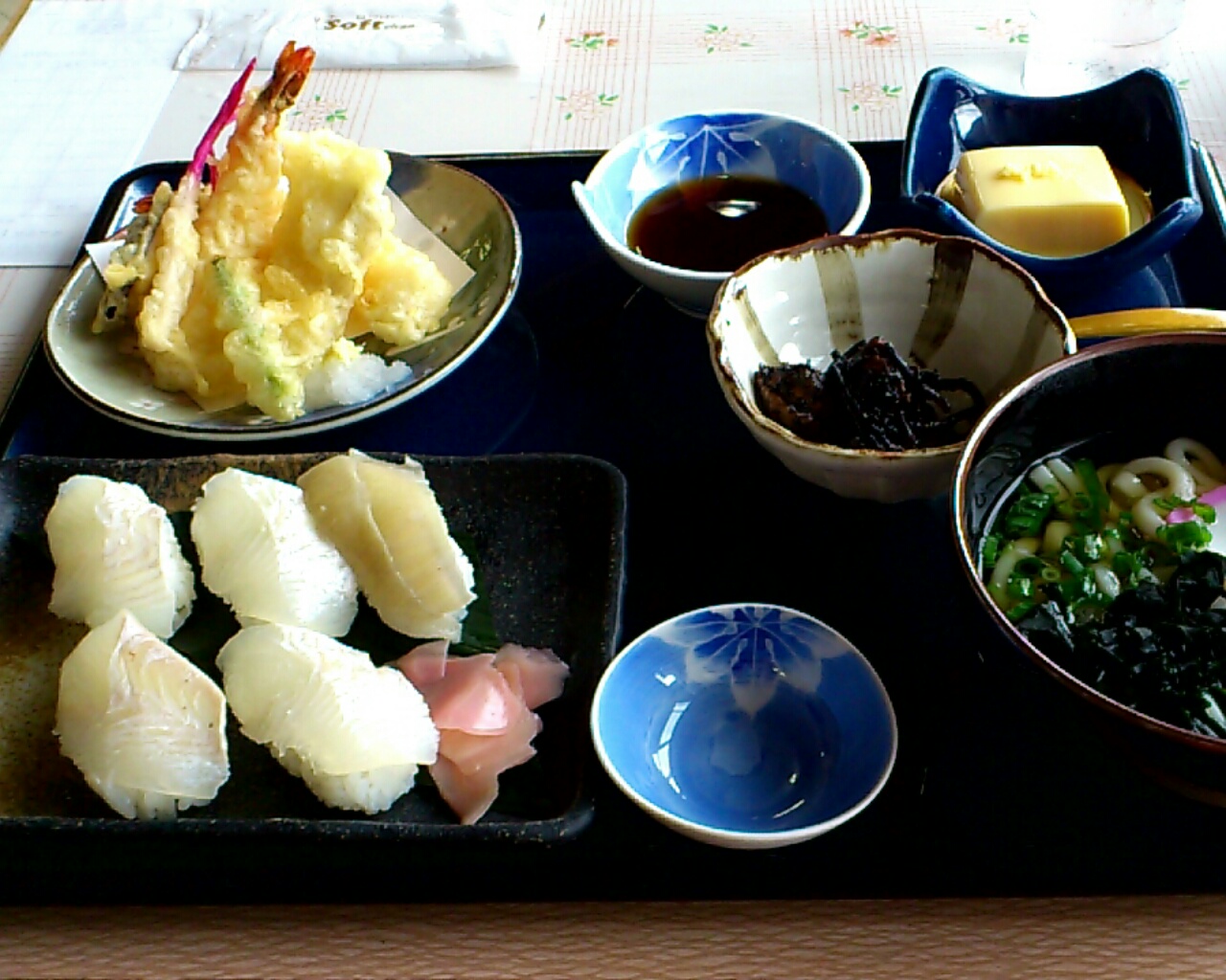 うどん、天ぷらはまあ普通のお味でしたが、メインのヒラメ握りはヒラメの身に 弾力があり、おいしゅうございました。